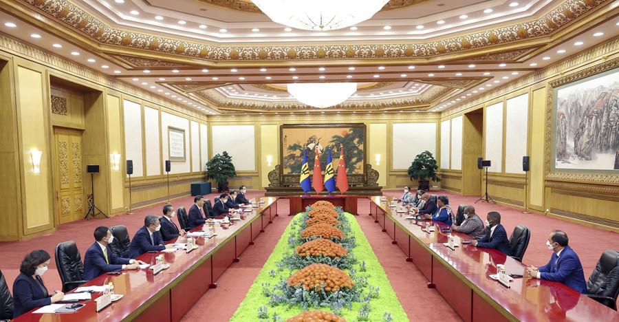 6月27日下午,國家主席習(xí)近平在北京人民大會堂會見來華進行正式訪問的巴巴多斯總理莫特利。新華社記者 姚大偉 攝