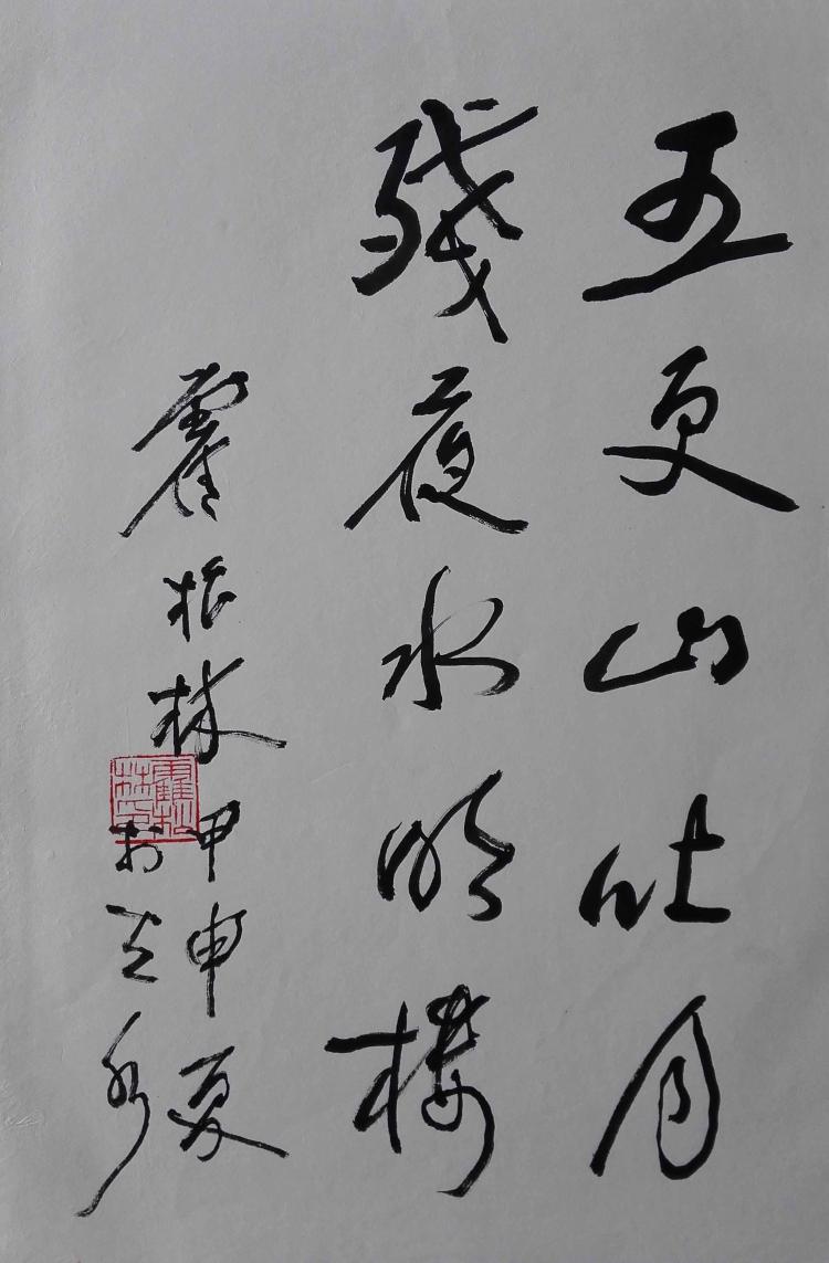 這天傍晚,我和小蘇還各求得霍老一幀墨寶,寫在二號冊頁上,內(nèi)容都取自杜甫《秦州雜詩》,足見先生對老杜流寓天水的這組詩感情之深。給小蘇寫的是“無風(fēng)云出塞,不夜月臨關(guān)”,給我寫的是“五更山吐月,殘夜水明樓”。寫的時候說:“年齡大了,手抖?!?/p>