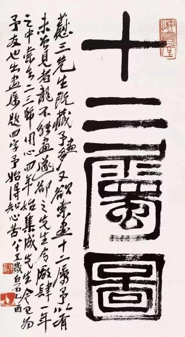 齊白石題跋 《十二屬圖》封面 1945年 北京畫院藏