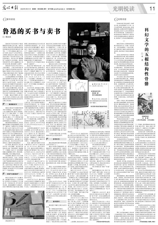 北京魯迅博物館1959年編《魯迅手跡和藏書目錄》顯示,魯迅的藏書共計(jì)1.4萬余冊(cè),其中中文線裝書計(jì)946種7704冊(cè)。這自然無法比擬當(dāng)時(shí)的藏書界名流如張?jiān)獫?jì)、傅增湘,也不可與富貴名流劉承干、袁克文的藏書相比,但是,魯迅用他的藏書發(fā)揮的功效,迸發(fā)的思想火花,創(chuàng)造的精神財(cái)富,在現(xiàn)代文學(xué)史乃至學(xué)術(shù)史上,卻創(chuàng)造了一個(gè)高峰。魯迅買書藏書、抄書補(bǔ)書、賣書易書,買賣抄補(bǔ)之間,反映著魯迅對(duì)圖書的態(tài)度以及治學(xué)作文做人的態(tài)度。