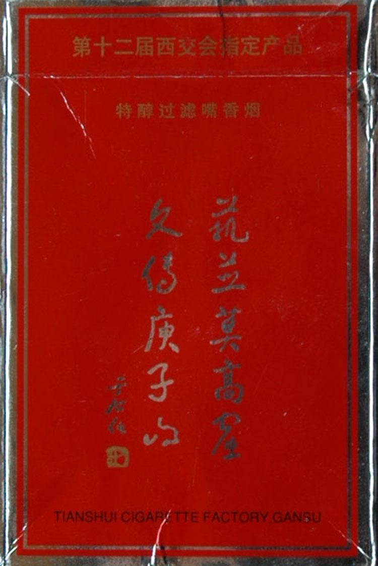 “第十二屆中國西部商品交易會暨2000年天水伏羲文化旅游節(jié)”舉辦期間,為配合盛會召開,曾出品有一枚“麥積山”煙標,該標為加字標,在煙標的上部有“第十二屆西交會指定產(chǎn)品”字樣。該標主題顏色為鮮紅色,煙標的主標繪有麥積山的輪廓,雖是簡簡幾筆,但麥垛形的麥積山躍然紙上。更為奇特的還是煙標的副標為一副對聯(lián),仔細一看原來是書法大師于右任的墨跡,為“藝并莫高窟;文傳庾子山”落款為“于右任”。原來,這就是于右任為麥積山題寫的一副著名的對聯(lián)。