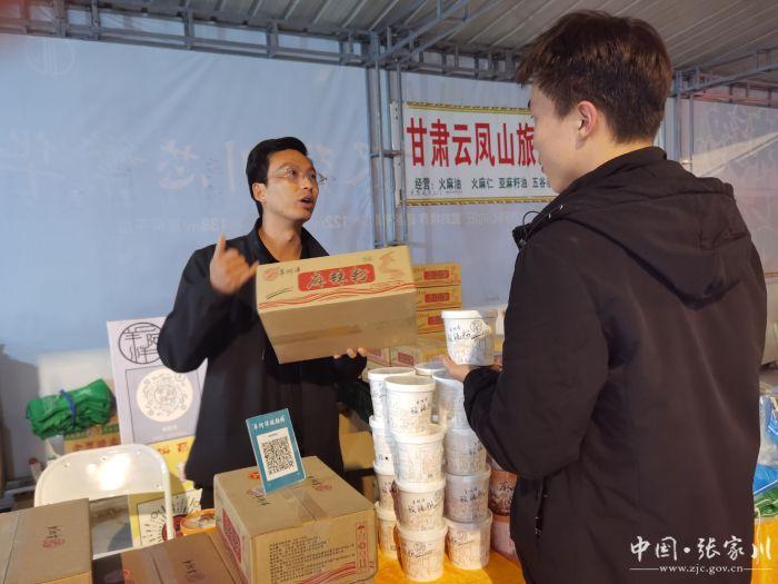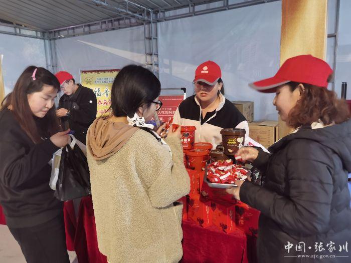 張家川縣本土企業(yè)生產(chǎn)的土豆粉條和巧克力也深受歡迎,引來顧客圍觀購買。