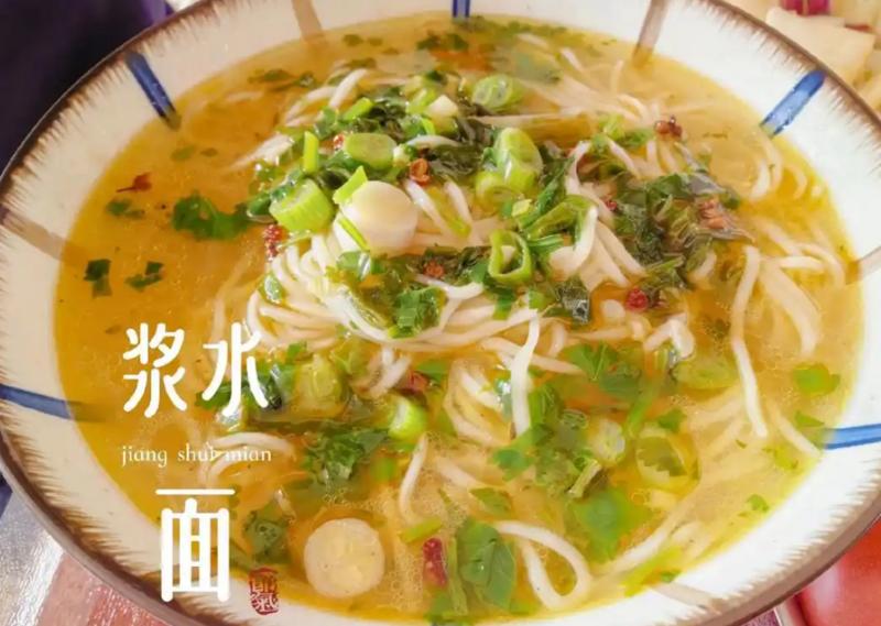 漿水面,其實還有另外一種極簡單的做法,就是在清水里煮好面,直接倒了生漿水下去,撒上鹽,待湯面熱透,撈將出來,有面有湯,一碗的酸澀清淡,在夏日,很是消暑解渴。這種做法是家常的,省卻了很多油水,而熗鍋漿水面,只有來客人時才會有。