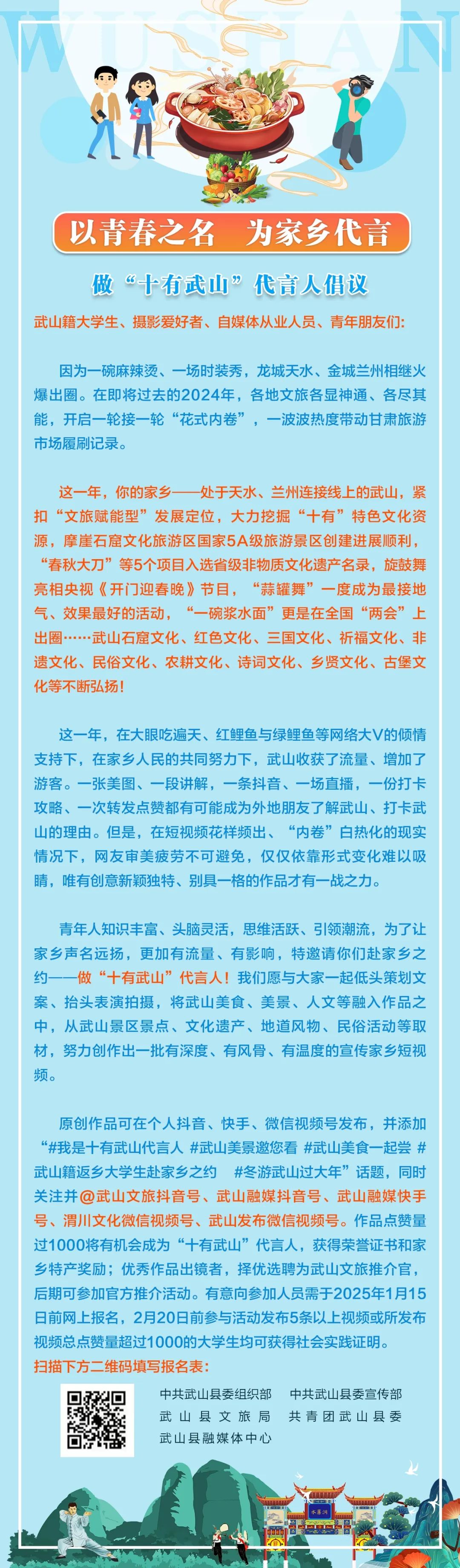 以青春之名 為家鄉(xiāng)代言——做“十有武山”代言人倡議
