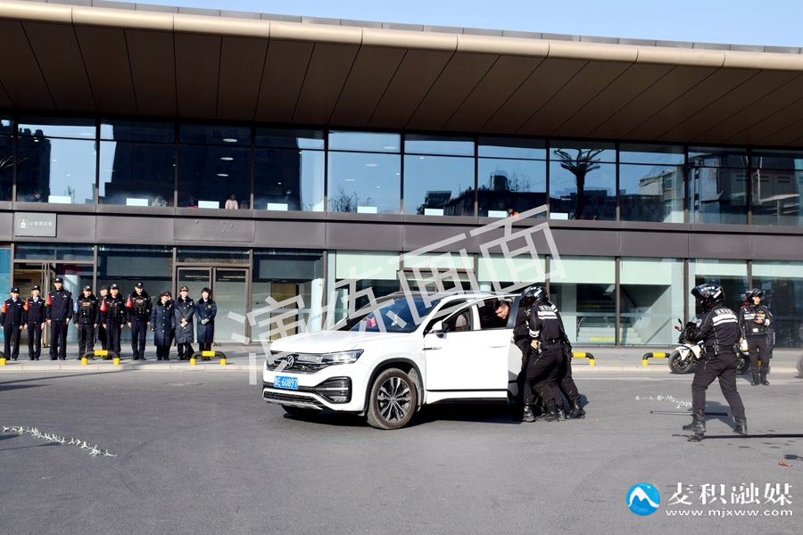 模擬場景中,一輛可疑車輛突然加速沖向火車站旅客密集區(qū)域,情況萬分危急。麥積分局接警后迅速反應,立即指派城市快反小組、攜犬民警增援天水站派出所。到達現(xiàn)場后,民輔警們迅速分工協(xié)作,城市快反小組、巡警大隊利用便攜式臂盾、抓捕器、阻車釘?shù)妊b備,對嫌疑車輛進行圍堵攔截,嘗試迫使車輛停止行進;警犬對車內(nèi)人員進行威懾;派出所民警迅速在周邊設置警戒區(qū)域,疏散現(xiàn)場旅客,引導他們向安全地帶有序撤離,避免造成人員傷亡。在各方緊密配合下,成功控制住了嫌疑車輛及相關人員,解除了危機。隨后,車站工作人員協(xié)助民警對現(xiàn)場進行清理,盡快恢復了站前廣場的正常秩序。