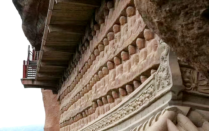 隴東南的群山間,麥積山石窟如一座凝固的藝術(shù)史詩。十六國后秦的斧鑿聲早已消散,凝結(jié)在時(shí)空里的“東方微笑”卻依然溫柔凝視著川流不息的時(shí)光和來來往往的人。