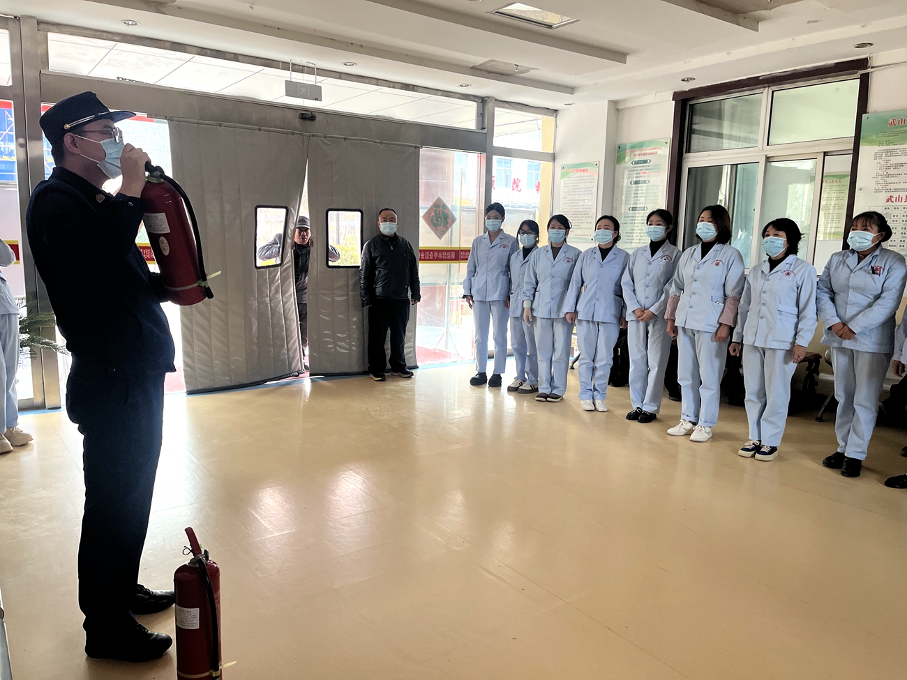 隨后,在大隊宣傳人員的指導(dǎo)下,開展了消防應(yīng)急演練。演練假設(shè)養(yǎng)老院某區(qū)域發(fā)生火情,警報聲拉響。工作人員迅速響應(yīng),第一時間啟動應(yīng)急預(yù)案,按照預(yù)定的疏散路線,有條不紊地組織老人沿安全通道進(jìn)行有序撤離。此外,參訓(xùn)人員還親手操作滅火器,認(rèn)真學(xué)習(xí)并熟練掌握“提、拔、握、壓”的正確使用方法,切實做到在關(guān)鍵時刻不僅“會用”,更能“敢用”,有效提升了應(yīng)急處置能力。