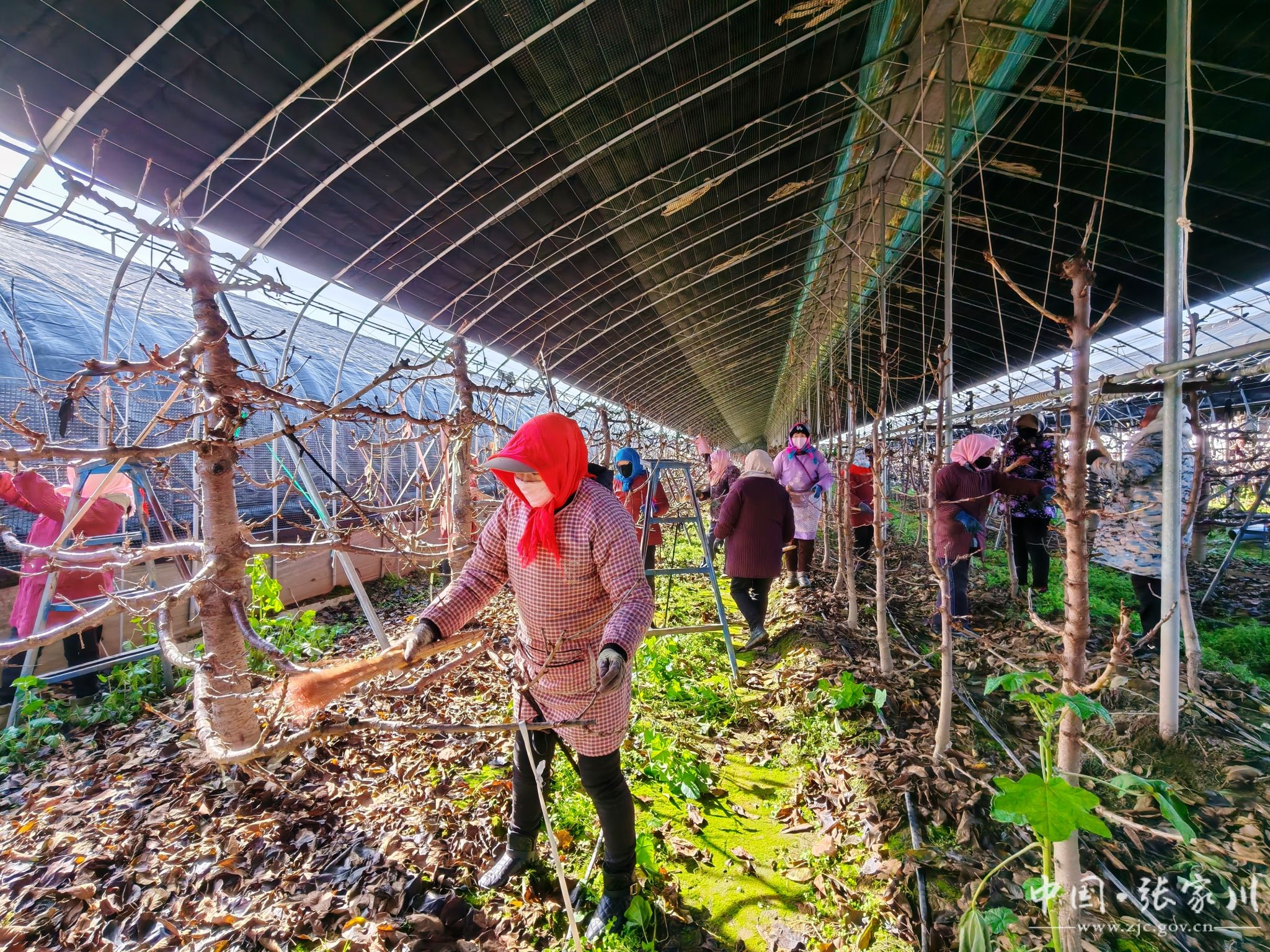 棚里的村民大多是附近的群眾,大家戴著口罩、手套,動(dòng)作麻利又細(xì)致?!斑@些櫻桃樹就像‘搖錢樹’,把它們伺候好了,明年才能結(jié)出又大又甜的果子?!币晃活^戴紅色圍巾的大姐擦了擦額頭的細(xì)汗,手里的掃帚不停。