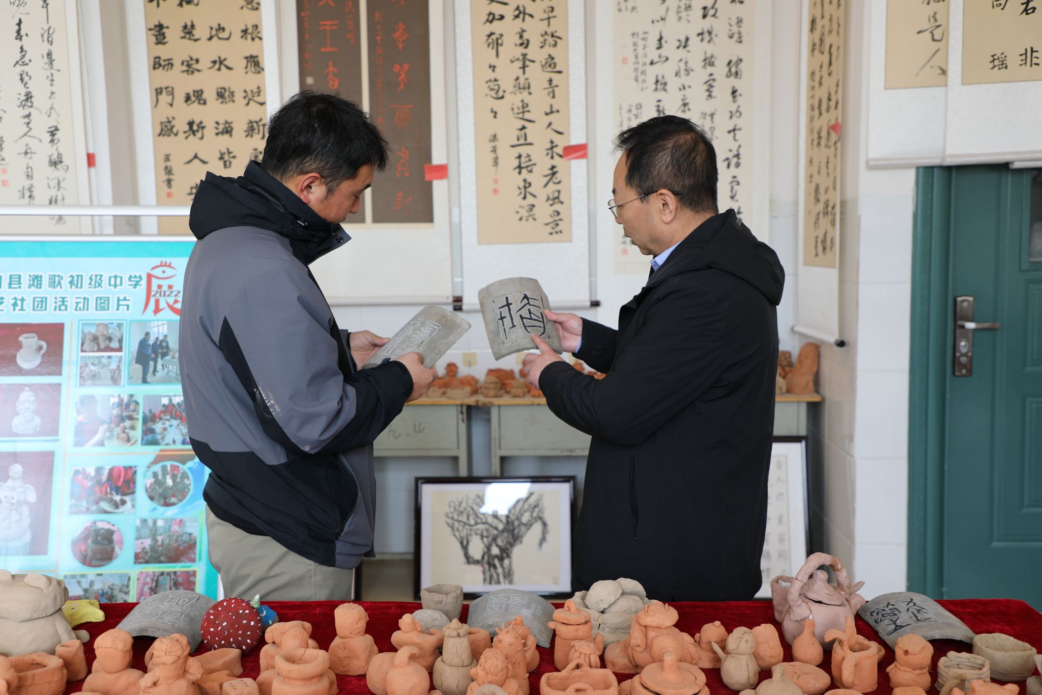 最火的還要數(shù)泥塑工作坊!在這里,普通的泥土能變成紅色故事陶印、民俗文化擺件,累計2000余件學(xué)生作品出爐,800余件優(yōu)秀作品被重點展示。2021年,100枚刻有黨史故事的陶印驚艷亮相;2023年,泥塑刻字拓片作品拿下省級大獎;2024年泥塑工作坊相關(guān)省級課題《鄉(xiāng)村學(xué)校泥塑教學(xué)校本課程開發(fā)和研究》結(jié)題。