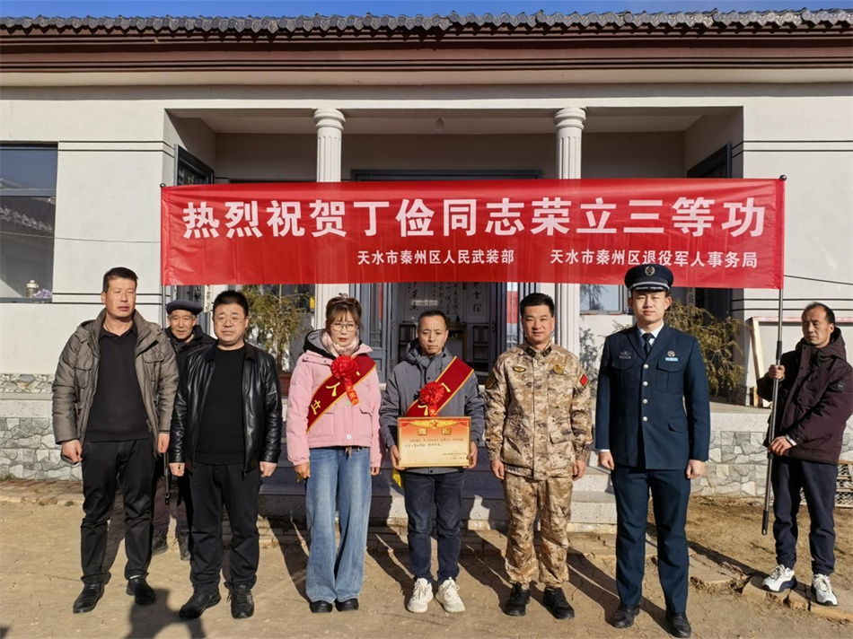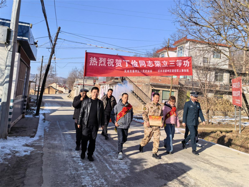 新天水訊 據(jù)秦州區(qū)融媒體中心消息 鑼鼓喧天慶榮耀,喜報(bào)登門暖軍心。1月6日,秦州區(qū)人民武裝部、區(qū)退役軍人事務(wù)局聯(lián)合平南鎮(zhèn)人民政府相關(guān)工作人員,懷著對(duì)現(xiàn)役軍人的崇高敬意與對(duì)軍屬的深切關(guān)懷,先后前往平南鎮(zhèn)富陽村、丁川村,為在部隊(duì)榮立“三等功”的現(xiàn)役軍人家庭登門送喜報(bào)?;顒?dòng)現(xiàn)場(chǎng)通過懸掛榮譽(yù)橫幅、燃放喜慶禮炮、敲響吉祥鑼鼓等形式,共同分享這份屬于軍人、家庭與家鄉(xiāng)的榮耀時(shí)刻。