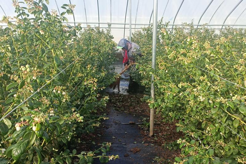 大棚內(nèi),忙碌的身影與掛滿枝頭的果實(shí)構(gòu)成了冬日里的豐收?qǐng)D景。為確保果品品質(zhì)達(dá)到高端市場(chǎng)標(biāo)準(zhǔn),工作人員正有序推進(jìn)摘花疏果精細(xì)化管理,通過剔除多余花朵與幼果,集中養(yǎng)分供給留存果實(shí),助力其個(gè)頭飽滿、風(fēng)味濃郁。同時(shí),工作人員及時(shí)清理地面腐葉敗果,從源頭減少霉菌滋生,全方位保障每一顆藍(lán)莓在大小、口感、風(fēng)味上均達(dá)到最佳狀態(tài),為搶占高端市場(chǎng)筑牢品質(zhì)根基。