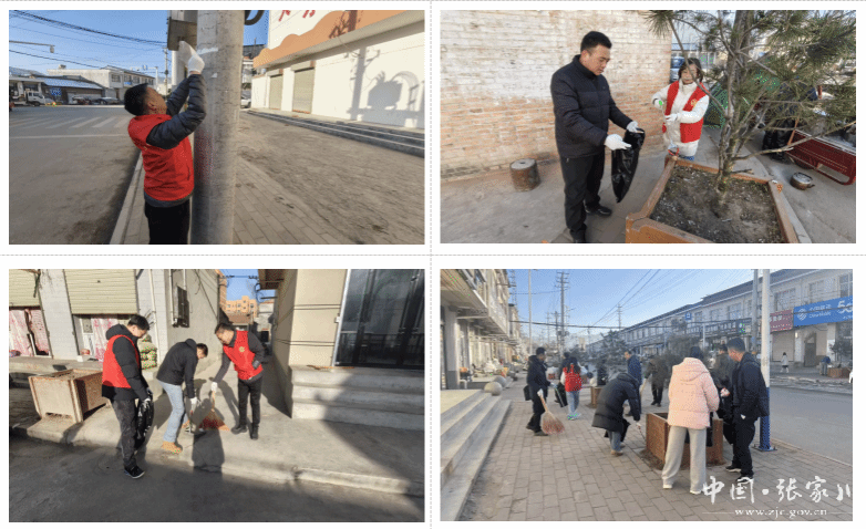 活動(dòng)現(xiàn)場(chǎng),身著紅馬甲的志愿者們化身鎮(zhèn)區(qū)“文明美容師”。他們手持笤帚、簸箕、鏟子等清潔工具,分工協(xié)作,對(duì)鎮(zhèn)內(nèi)主要街道、衛(wèi)生死角及公共區(qū)域進(jìn)行了全面清理。三支志愿服務(wù)小組各司其職、配合默契,深入主次干道、背街小巷、臨街商鋪周邊,全面清理路面散落垃圾、堆積雜物與公共設(shè)施上的“牛皮癬”小廣告;耐心引導(dǎo)非機(jī)動(dòng)車規(guī)范停放,對(duì)占道經(jīng)營(yíng)、亂堆亂放等不文明行為進(jìn)行勸導(dǎo),助力規(guī)整鎮(zhèn)區(qū)公共秩序。
