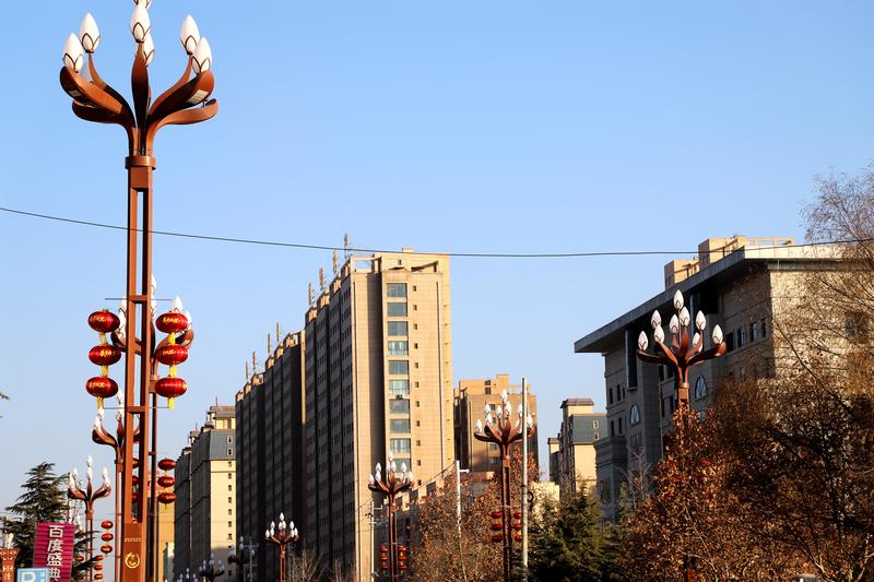 走出軒轅湖公園,道路兩旁的燈桿上,整齊懸掛的大紅燈籠一字排開,與來往車輛、行人構(gòu)成一幅鮮活的民生圖景。充國廣場作為市民休閑聚集的核心區(qū)域,節(jié)慶布置也是獨具特色。廣場路旁的樹木上,除了懸掛各式紅燈籠,還點綴著中國結(jié)、祥云掛件、彩色燈串等飾品,造型別致、寓意美好。