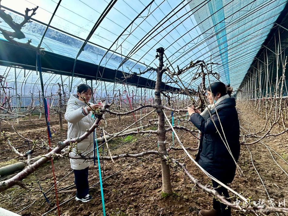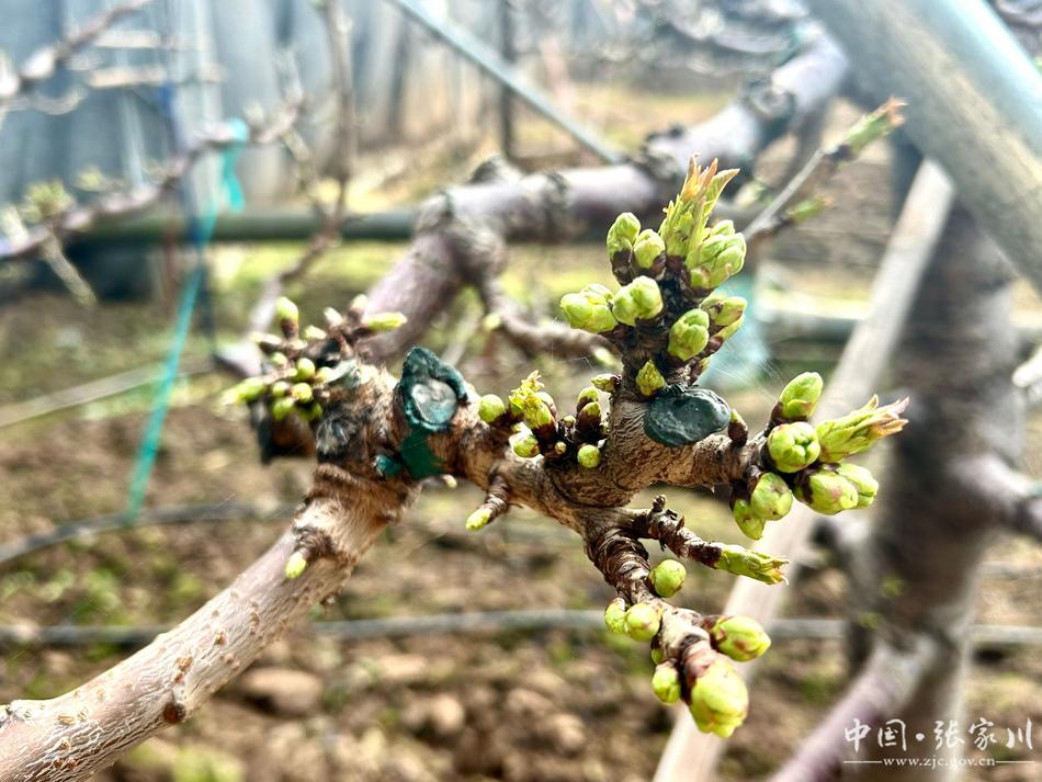 新天水訊 據(jù)張家川縣融媒體中心消息 在張家川縣龍山鎮(zhèn)南部的裕豐現(xiàn)代農(nóng)業(yè)示范園內(nèi),一排排設(shè)施大棚整齊排列。步入編號為A3的櫻桃大棚,溫暖濕潤的空氣撲面而來,一行行整齊的櫻桃樹正煥發(fā)著勃勃生機(jī)。褐色的枝條上,點點新芽已然冒出了頭,有的已微微綻開,吐露出內(nèi)里鮮嫩的葉尖。1月21日,縣氣象局組織業(yè)務(wù)人員深入龍山鎮(zhèn)、張家川鎮(zhèn)劉家村設(shè)施大櫻桃種植基地,開展直通式氣象服務(wù)。