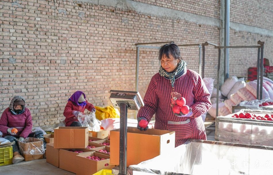 在經營模式上,合作社創(chuàng)新推行“農戶+合作社+客戶”與“黨支部+合作社+貧困戶”雙輪驅動機制,堅持“做強企業(yè)、帶動從業(yè)、發(fā)展農業(yè)、增加就業(yè)”的理念,構建起從種植、收購、倉儲到銷售的全鏈條服務體系。目前,合作社已輻射帶動周邊二十余個村莊、一萬多戶農戶發(fā)展蘋果和花椒產業(yè),并在國內多地設立銷售網點,積極拓展國際市場,讓秦安蘋果走向更廣闊的舞臺。同時,合作社還為周邊村民提供了大量就業(yè)崗位。尤其在農閑時節(jié),不少村民進入車間從事分揀、包裝等工作,實現(xiàn)“家門口就業(yè)”。正在車間忙碌的村民楊亮亮笑著說道:“合作社給我們帶來了實實在在的收入,我干了十多年了,每月有三千多的收入,掙錢又近又方便,特別踏實?!?/p>