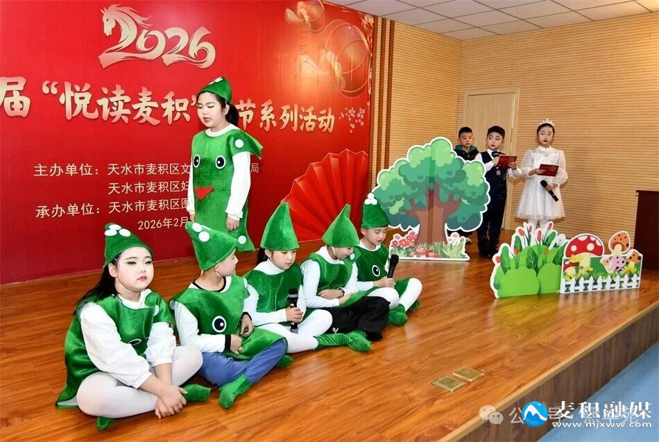 活動現場暖意融融、氛圍熱烈,文藝展演輪番上演、精彩紛呈。繪本劇《一個豆莢里的五粒豆子》童趣盎然,用生動演繹帶領觀眾走進奇妙的書籍世界;誦讀節(jié)目《花木蘭》《隴韻輝煌》《敦煌壁畫飛天小仙》兼具家國情懷與隴原韻味,聲情并茂的朗誦盡顯經典文化的博大精深;歌曲《陽光路上》、舞蹈《小花神》、集體舞《小美滿》活力四射,用歡快的旋律與優(yōu)美的舞姿傳遞新春喜悅,真正實現了書香綴年味、藝韻潤人心,充分彰顯了麥積區(qū)深厚的文化魅力與蓬勃的新春活力。