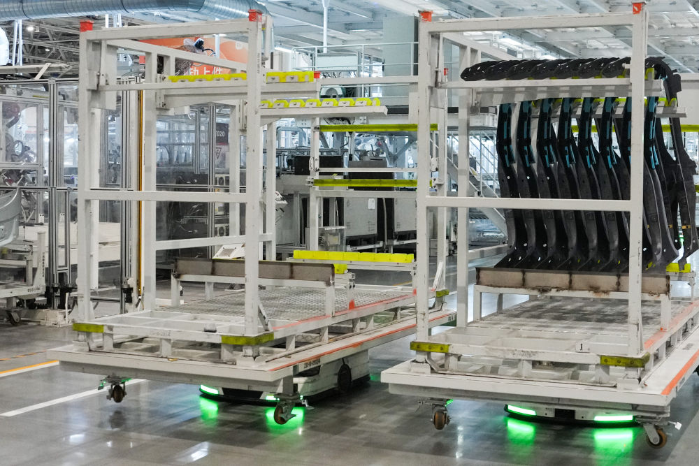 從研發(fā)制造到測(cè)試應(yīng)用,北京發(fā)揮汽車產(chǎn)業(yè)長期積累,積極擁抱新品牌、新技術(shù),新模式,新能源汽車產(chǎn)業(yè)蓬勃發(fā)展,產(chǎn)業(yè)鏈供應(yīng)鏈不斷鞏固完善。這是自主移動(dòng)機(jī)器人在北京小米汽車工廠搬運(yùn)物資(2025年6月16日攝)。