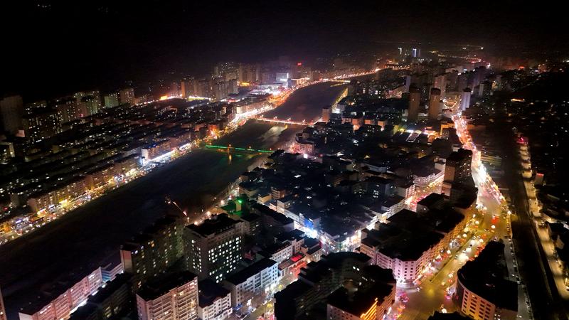 漫步城區(qū),寧遠(yuǎn)大道、南北濱河路沿線樹木、燈桿綴滿各色彩燈和鮮紅燈籠,它們隨風(fēng)輕搖,如星河垂落、繁花綻放、一步一景、滿目絢爛。