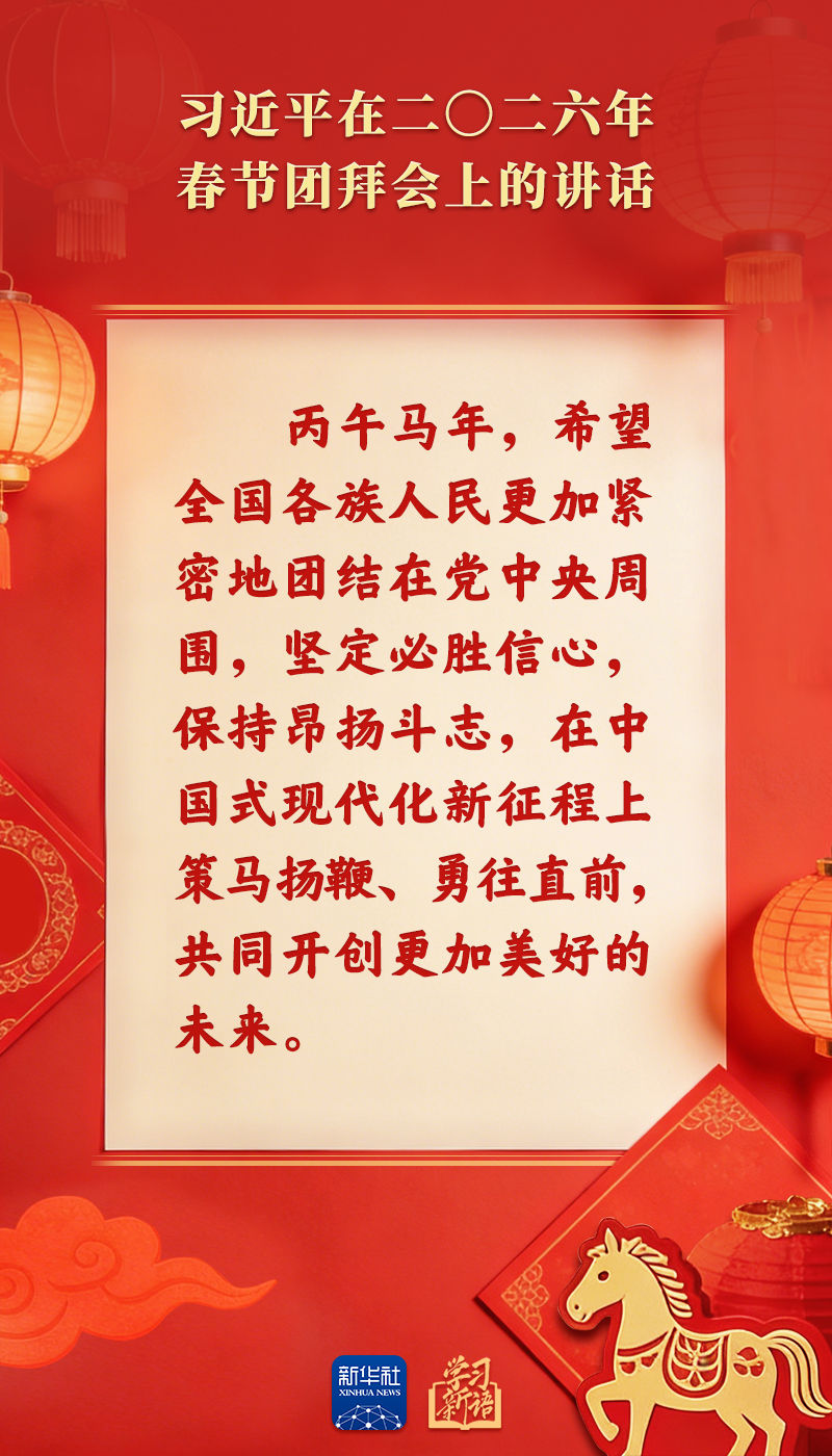 原標(biāo)題:學(xué)習(xí)新語|策馬揚(yáng)鞭、勇往直前!2026年春節(jié)團(tuán)拜會總書記講話金句