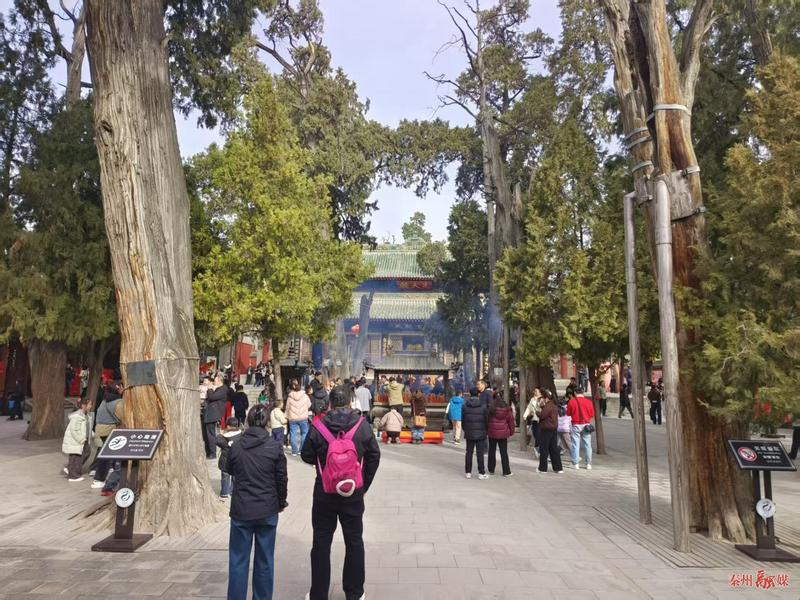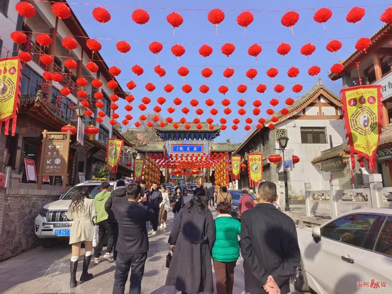 旅游熱潮不只在伏羲廟,玉泉景區(qū)憑借便利交通與深厚的歷史底蘊,同樣吸引了八方游客,成為春節(jié)假期的熱門景點。玉泉景區(qū)門前,高掛的大紅燈籠,讓春節(jié)的氣息撲面而來,在濃濃的年味里,遠道而來的游客在這里沉浸式體驗景區(qū)人文氛圍,欣賞千年古觀。