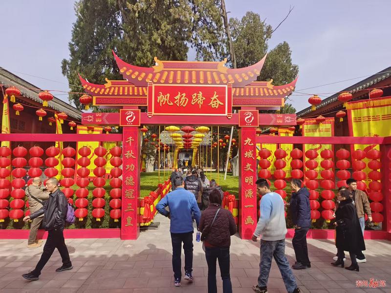 春節(jié)假期,伏羲廟迎來了客流高峰,不少家庭結伴出游,尋根祭祖,祈福納祥,濃濃的年味、厚重的歷史文化底蘊,讓這里成為游客新春期間的熱門選擇。記者在伏羲廟景區(qū)看到,紅燈籠高高掛起,古建院落喜氣洋洋,濃郁的節(jié)日氛圍撲面而來。來自各地的游客們有序參觀、祈福納祥,在人文始祖圣地感受厚重的歷史文脈和濃郁的新春氣息。