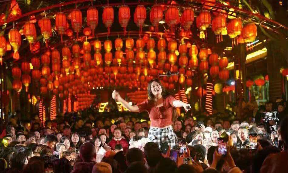 節(jié)日期間,“迎客天下·幸福秦州”——?dú)g樂秦州年第二屆文化旅游活動(dòng)周在青年北路拉開帷幕。華燈初上,紅燈籠與霓虹燈交相輝映,盡管春寒料峭,現(xiàn)場已是人山人海、暖意融融?;顒?dòng)在歌曲《一路生花》中熱烈開場,趣味互動(dòng)環(huán)節(jié)迅速點(diǎn)燃全場熱情。隨后,《擼起袖子加油干》《甘肅老家》《天水在哪里》等節(jié)目輪番登場,激昂旋律與溫情曲調(diào)交織,引發(fā)全場大合唱。翻飛的旗海與陣陣歡騰,將現(xiàn)場匯成一片喜慶的海洋。