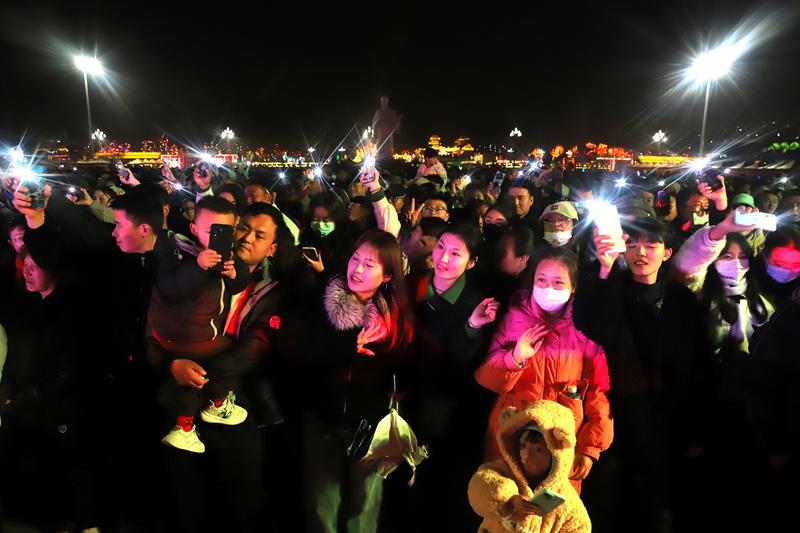 不少觀眾跟著節(jié)拍輕輕搖擺,手中的閃光燈隨著音樂律動匯成點點星河,有人舉起手機記錄精彩瞬間,孩子在人群中穿梭嬉戲,歡聲笑語在廣場上空回蕩。兩個小時的演出時間里,軒轅廣場始終洋溢著熱烈歡快的節(jié)日氣息。