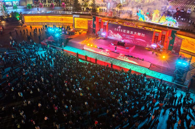 新天水訊 據(jù)清水縣融媒體中心消息 2月25日晚,農(nóng)歷丙午年正月初九,“青山綠水·只此清水”2026年清水縣樂動之夜在縣軒轅廣場精彩上演,為市民游客獻上了一場活力四射的視聽盛宴。